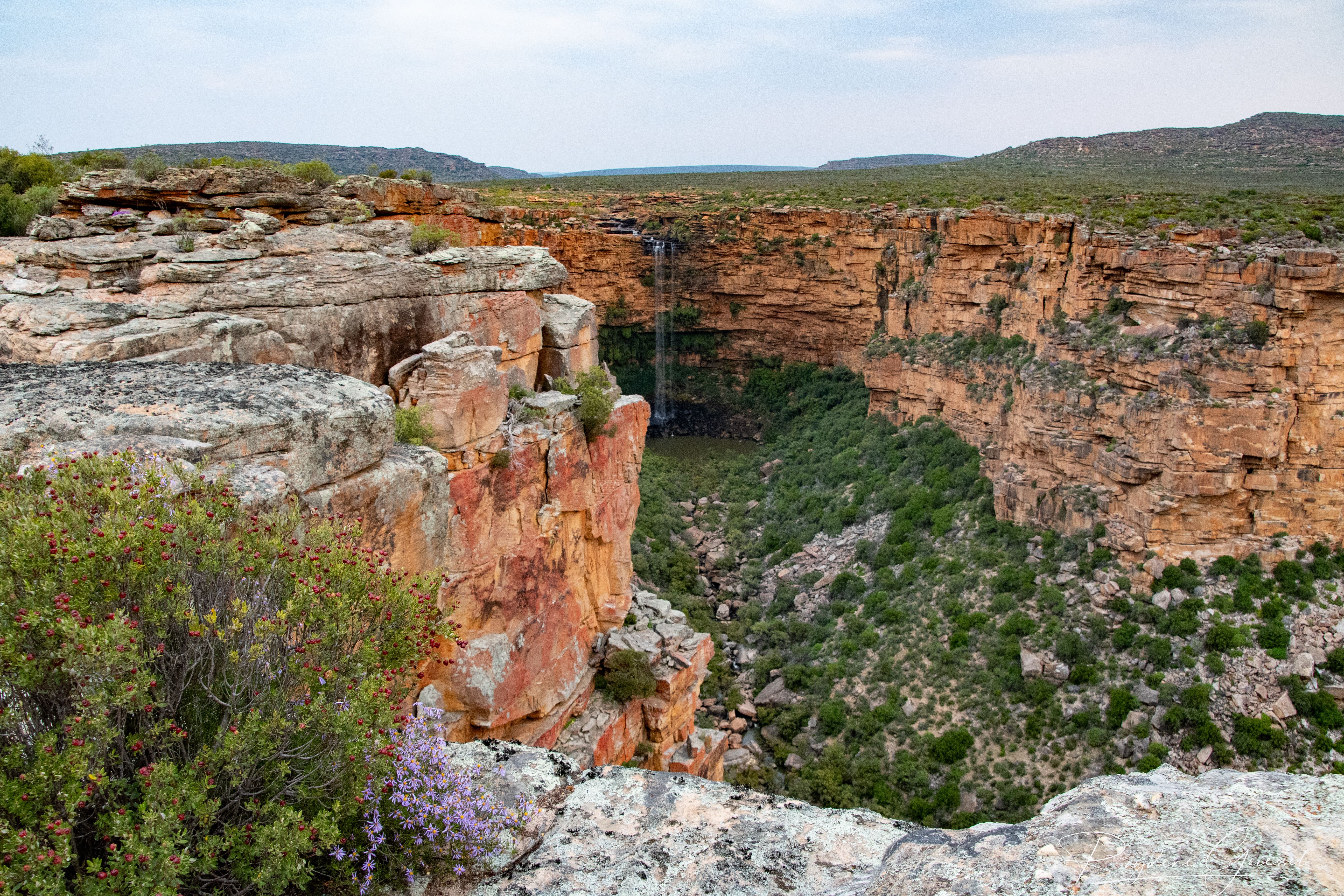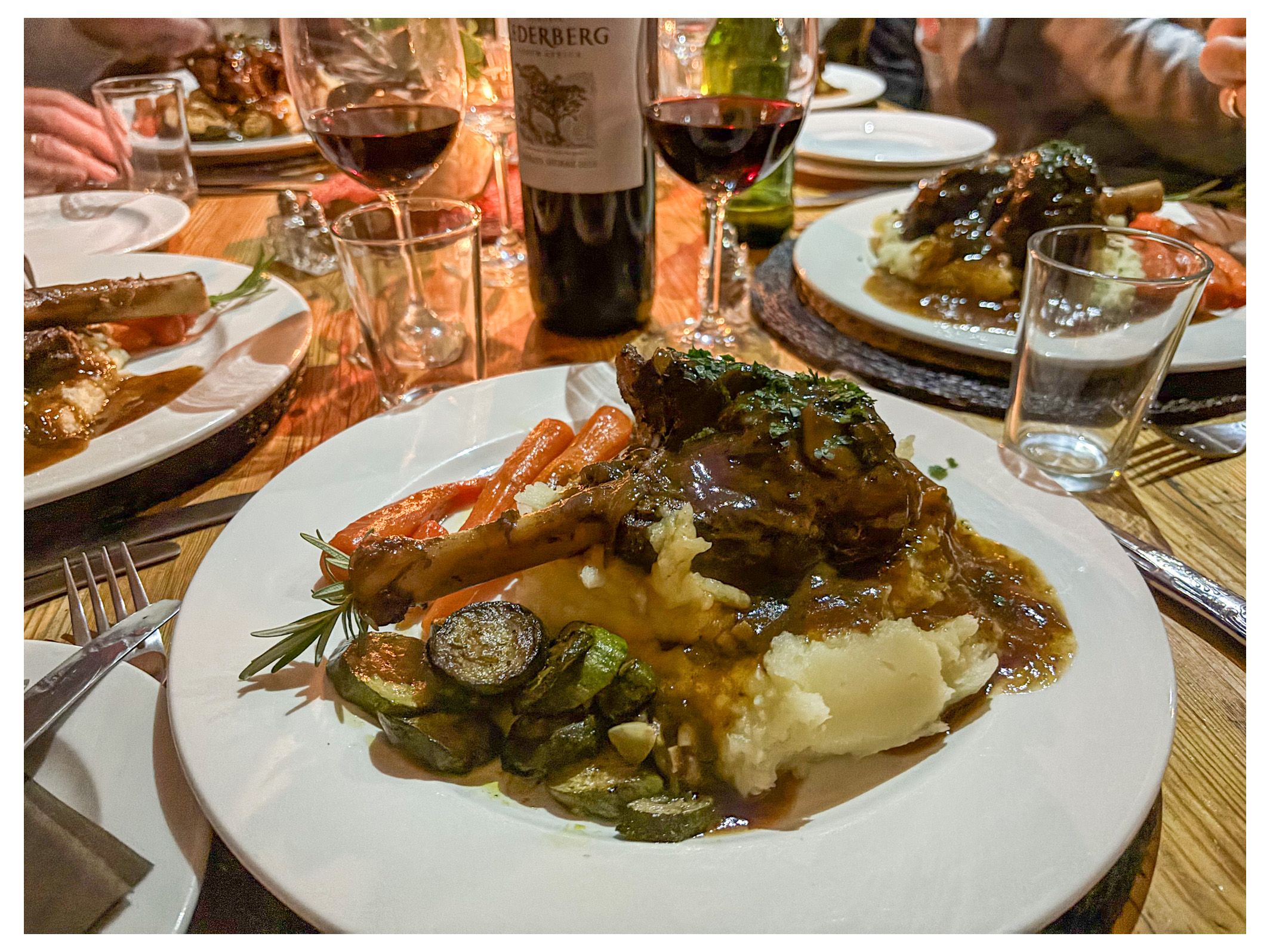 Our first night featured a delicious home-cooked meal, starting with homemade soup, followed by lamb shank with mashed potatoes and vegetables, and finishing with a home-baked pudding, all accompanied by a local red wine. The next day after all our exploring of Nieuwoudtville and surroundings took a trip to see the canyon and waterfall, and the farm’s natural beauty was quite appealing. If we find ourselves in the area again, we’d be happy to return.