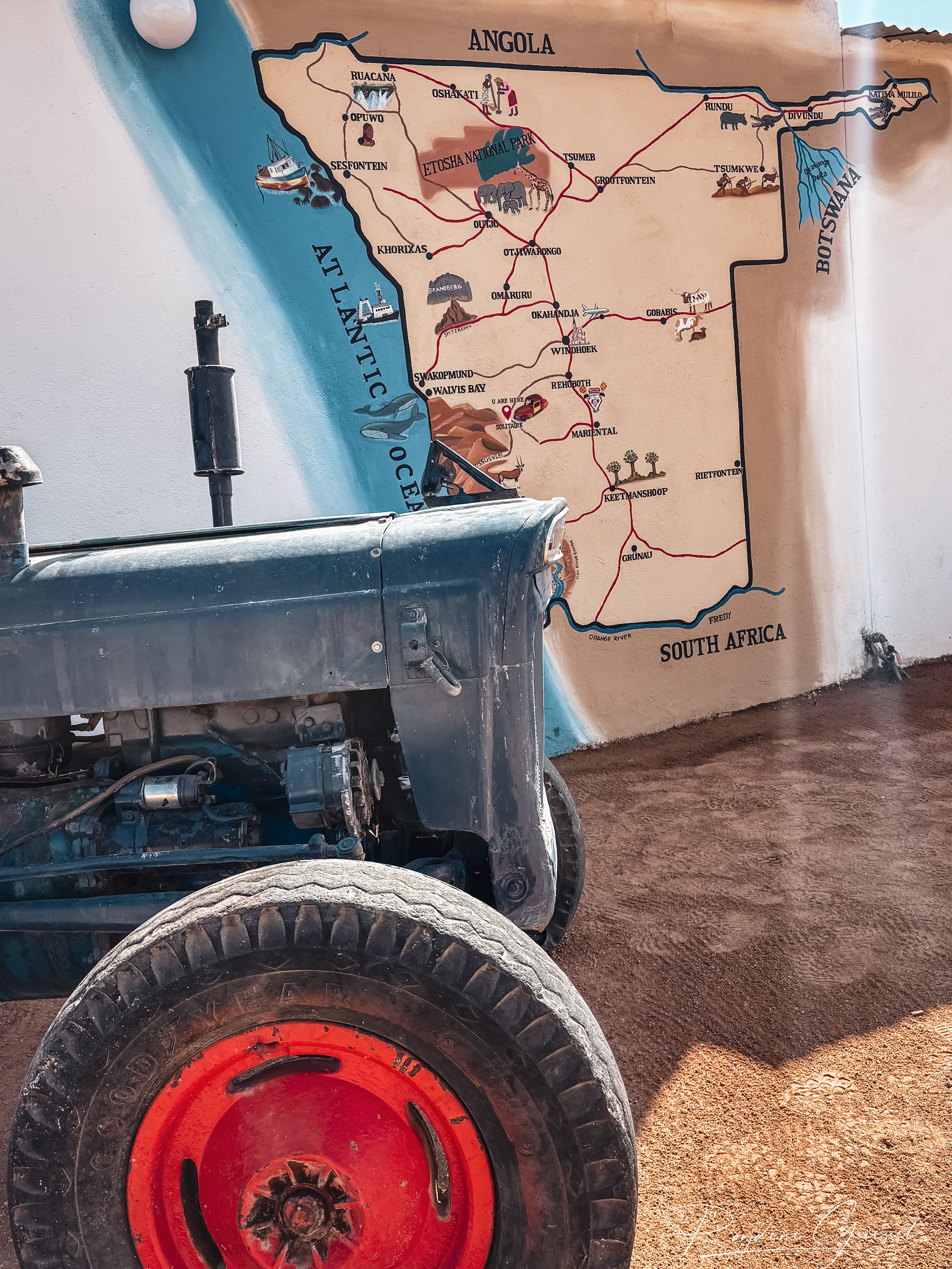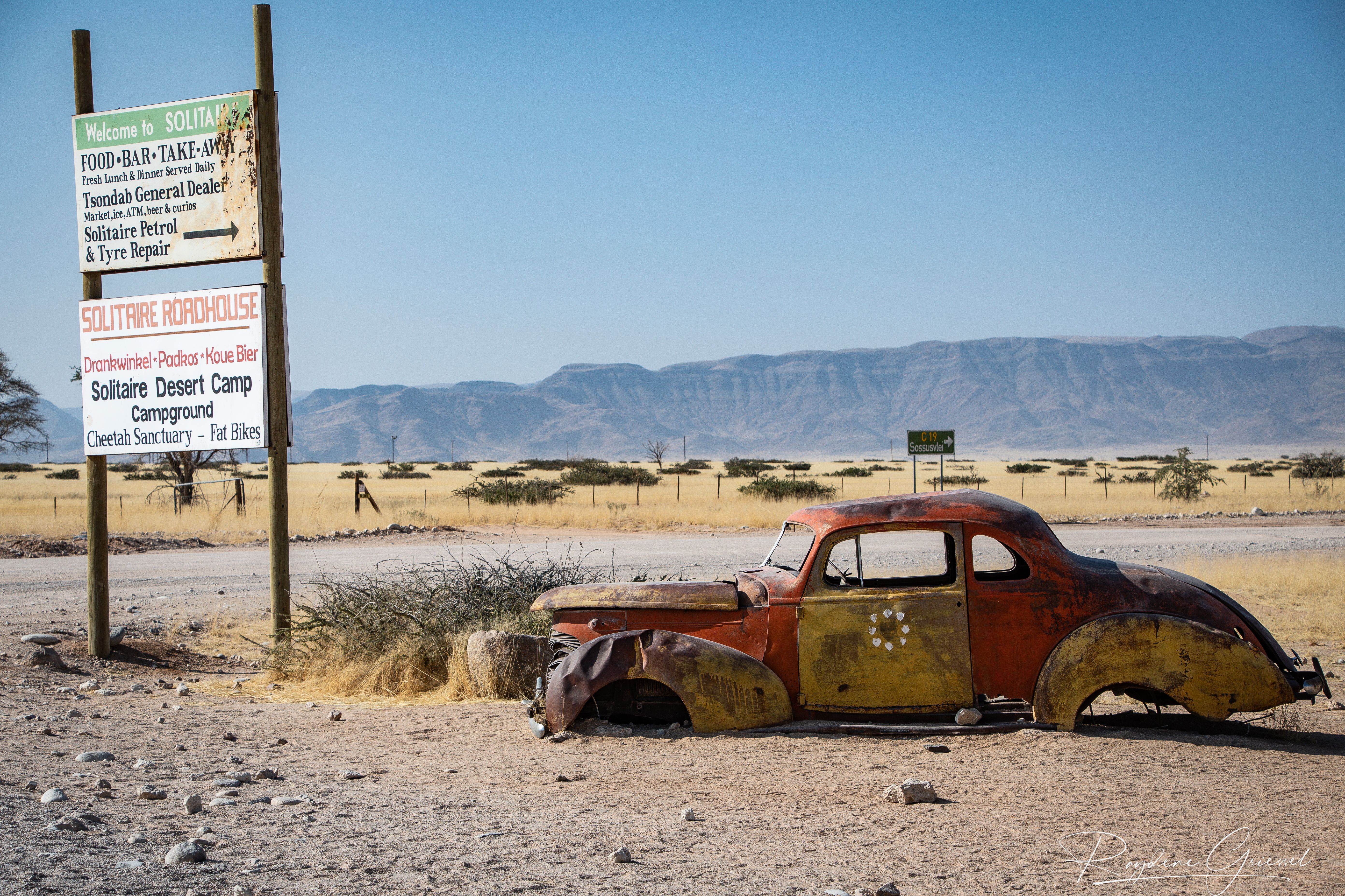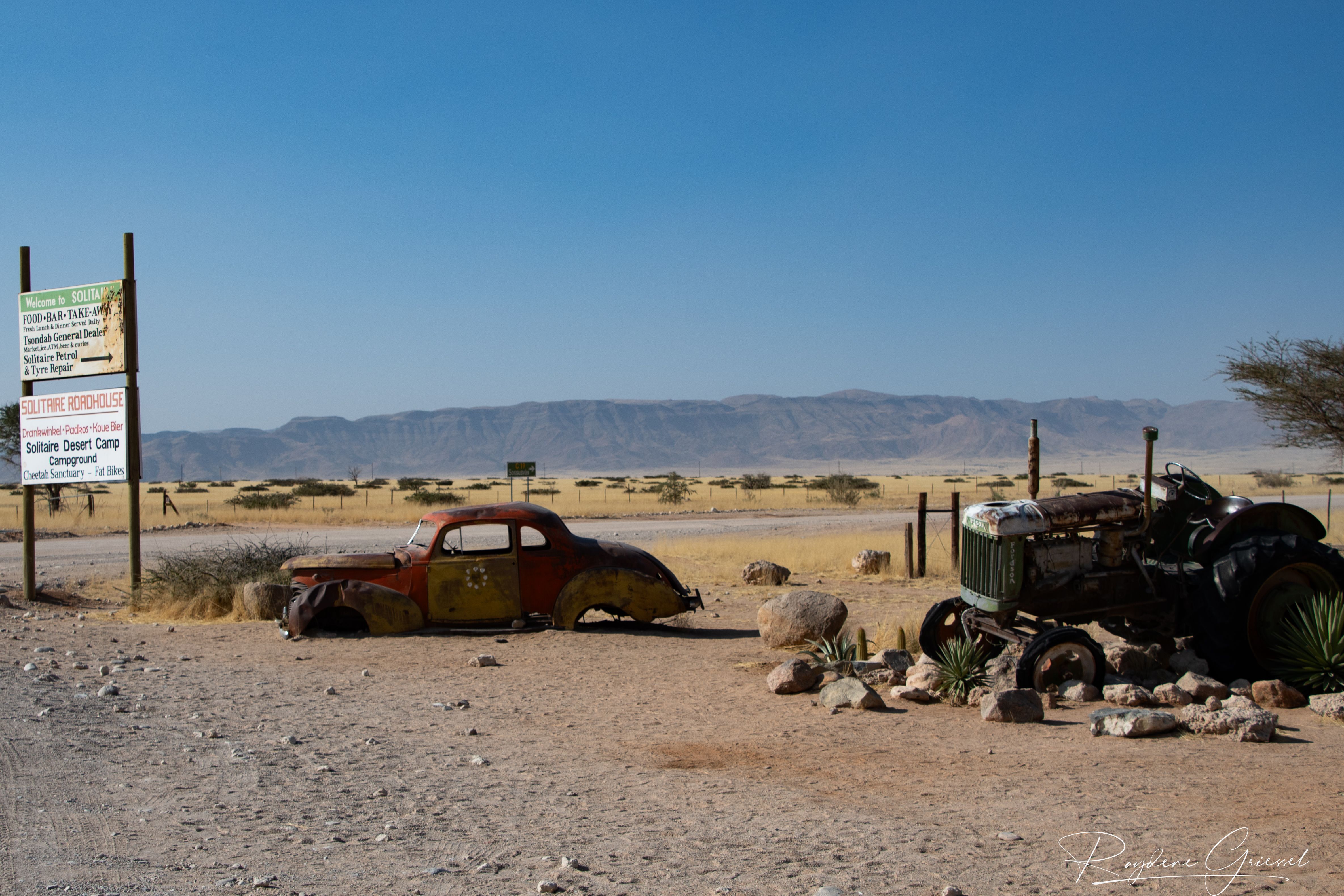 Leaving Namib Desert Campsite, we set off for Solitaire, a mere 30km away and famed for its apple pie and decent coffee. At Solitaire, we were slightly unlucky—a tourist bus had arrived just before us, leading to a short queue. We ordered the famous apple pie with cream and a coffee, then relaxed briefly at the tables, savouring the pastry and rich brew before tackling the drive to Walvis Bay.