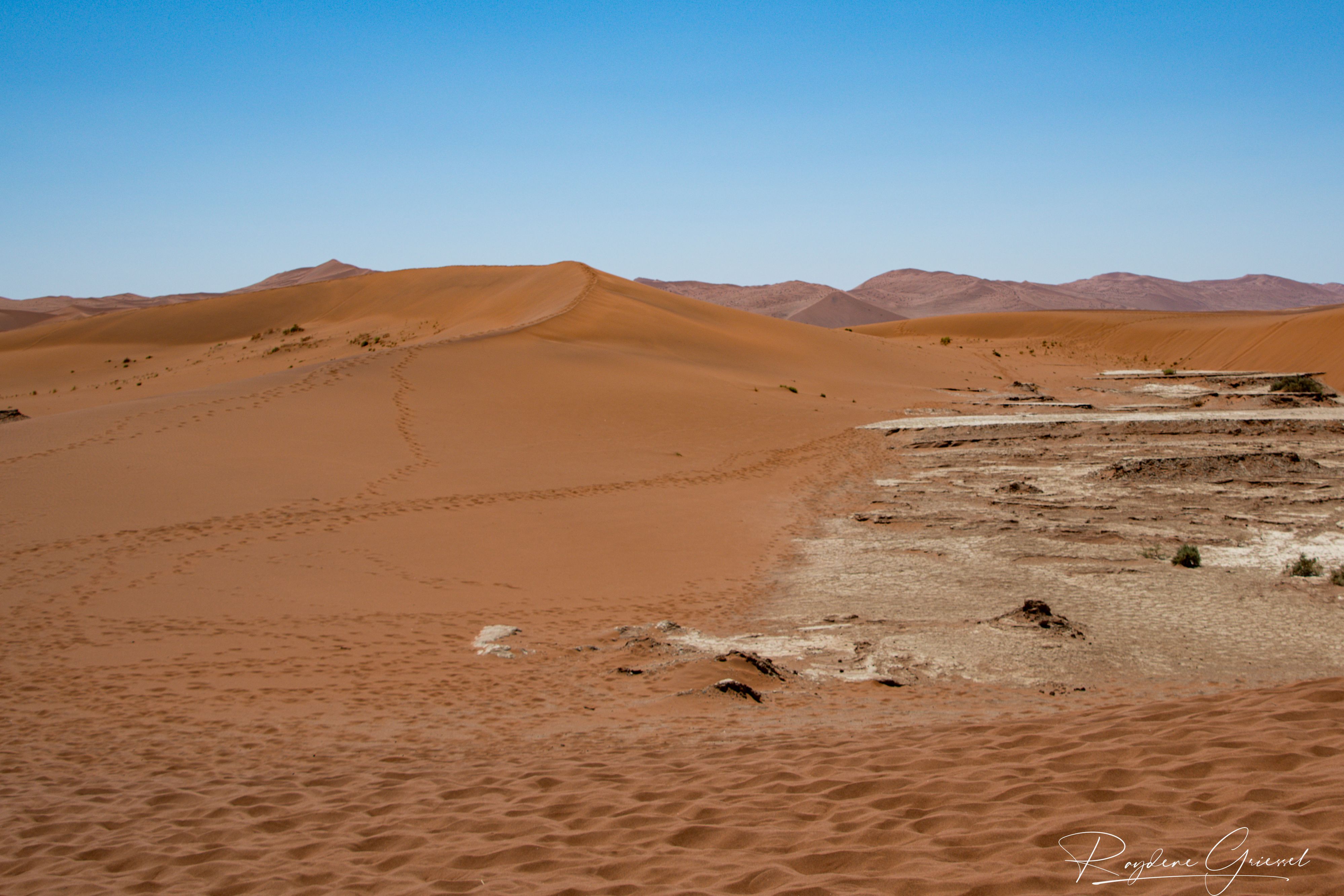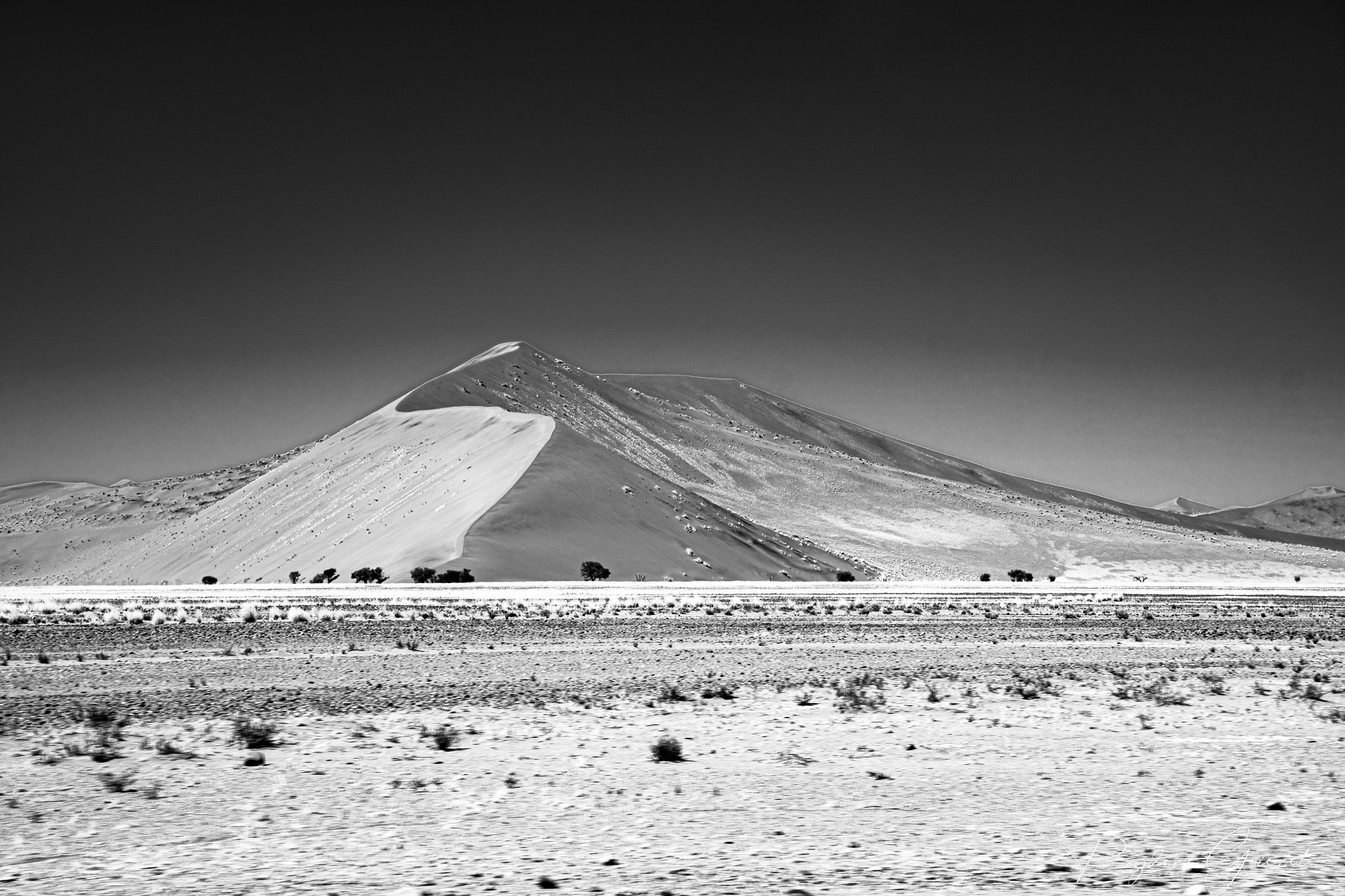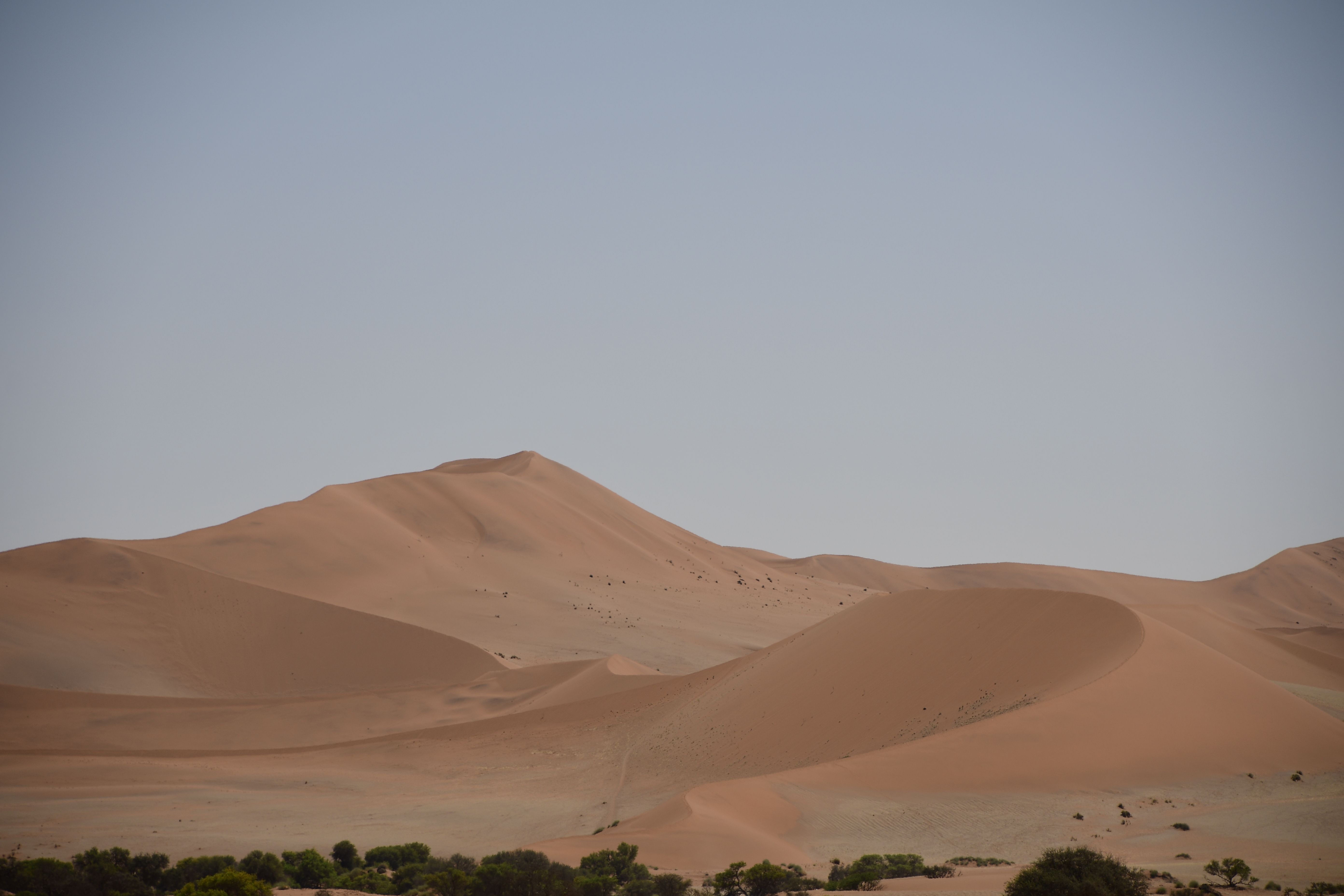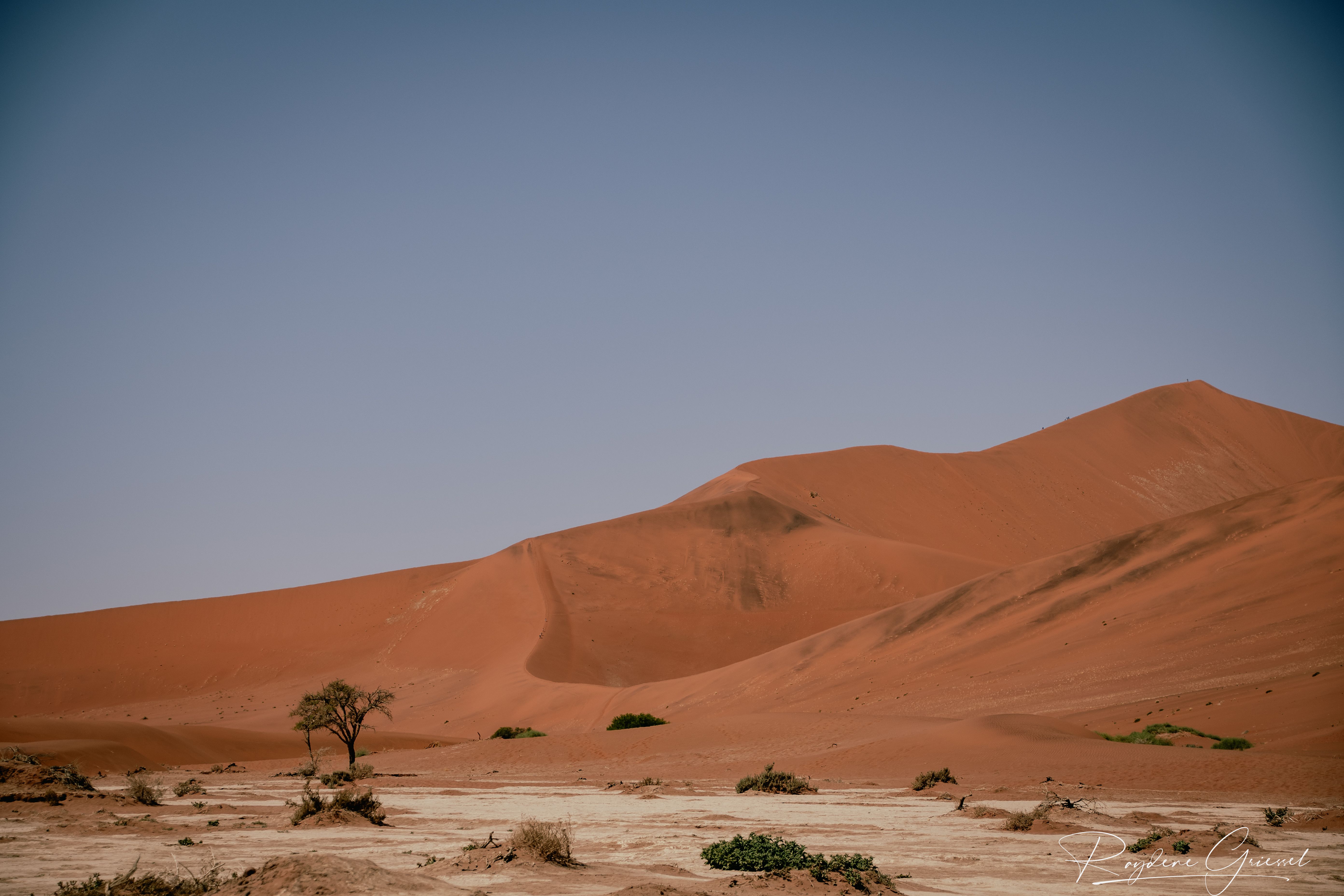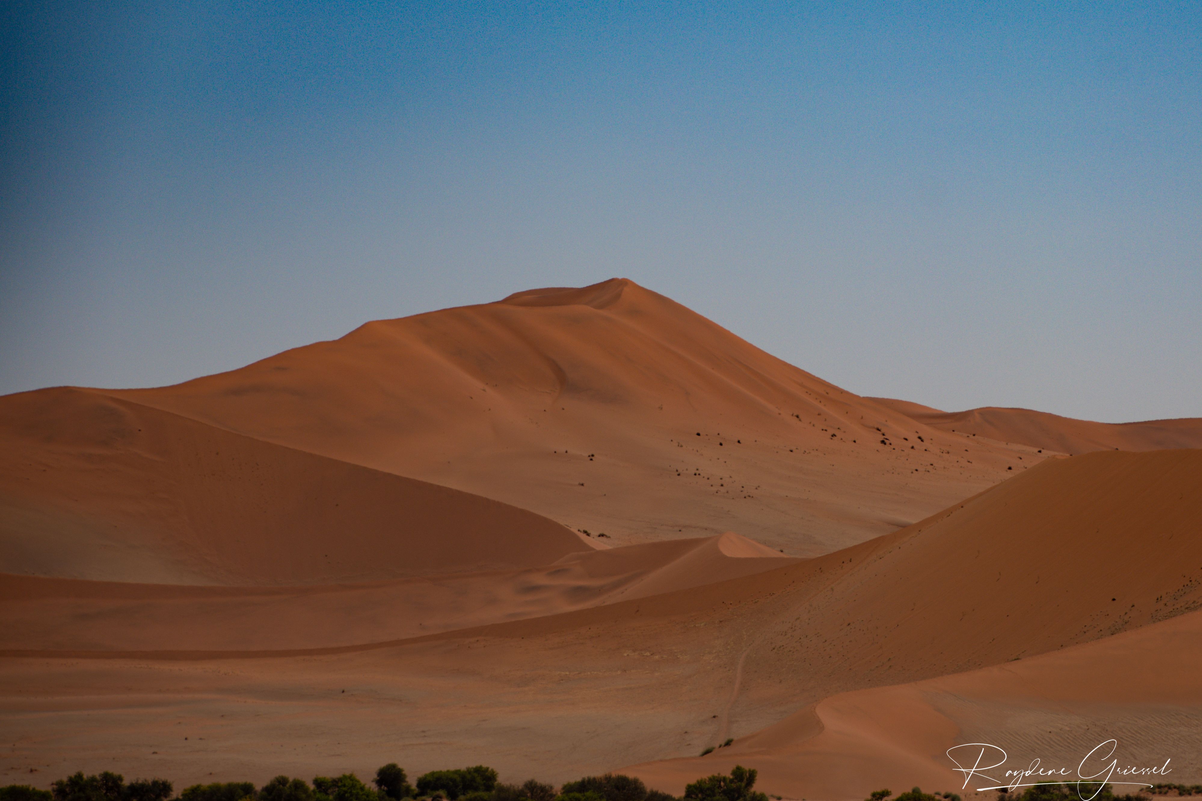 On our return, Mike & Shane climbed Dune 45, a 170m star dune named for its 45km distance from Sesriem. The ascent was gruelling—sand slipping underfoot, the relentless sun and wind—but reaching the ridge felt like summiting a desert peak. The view of rolling dunes and distant mountains was worth every step.