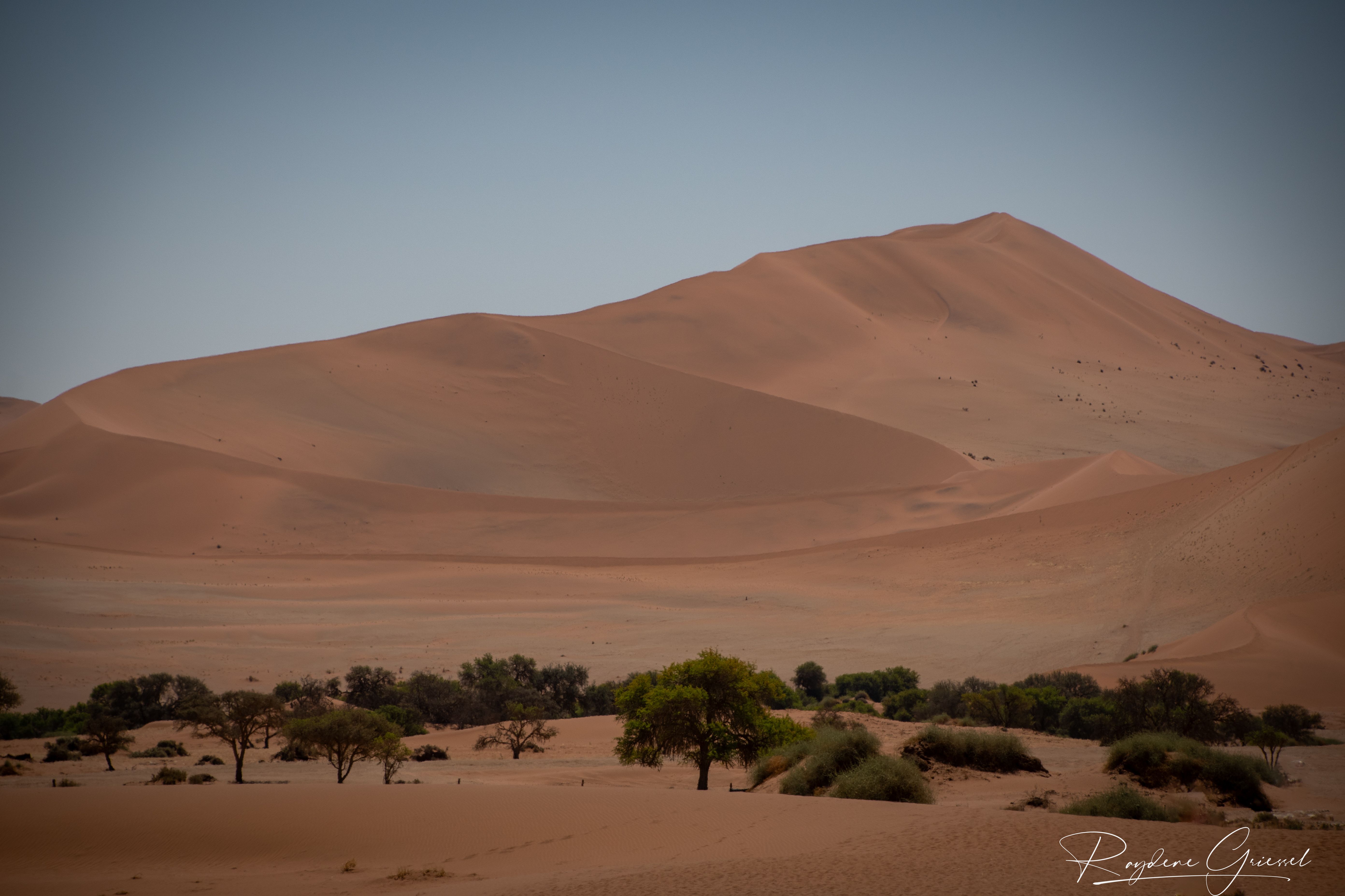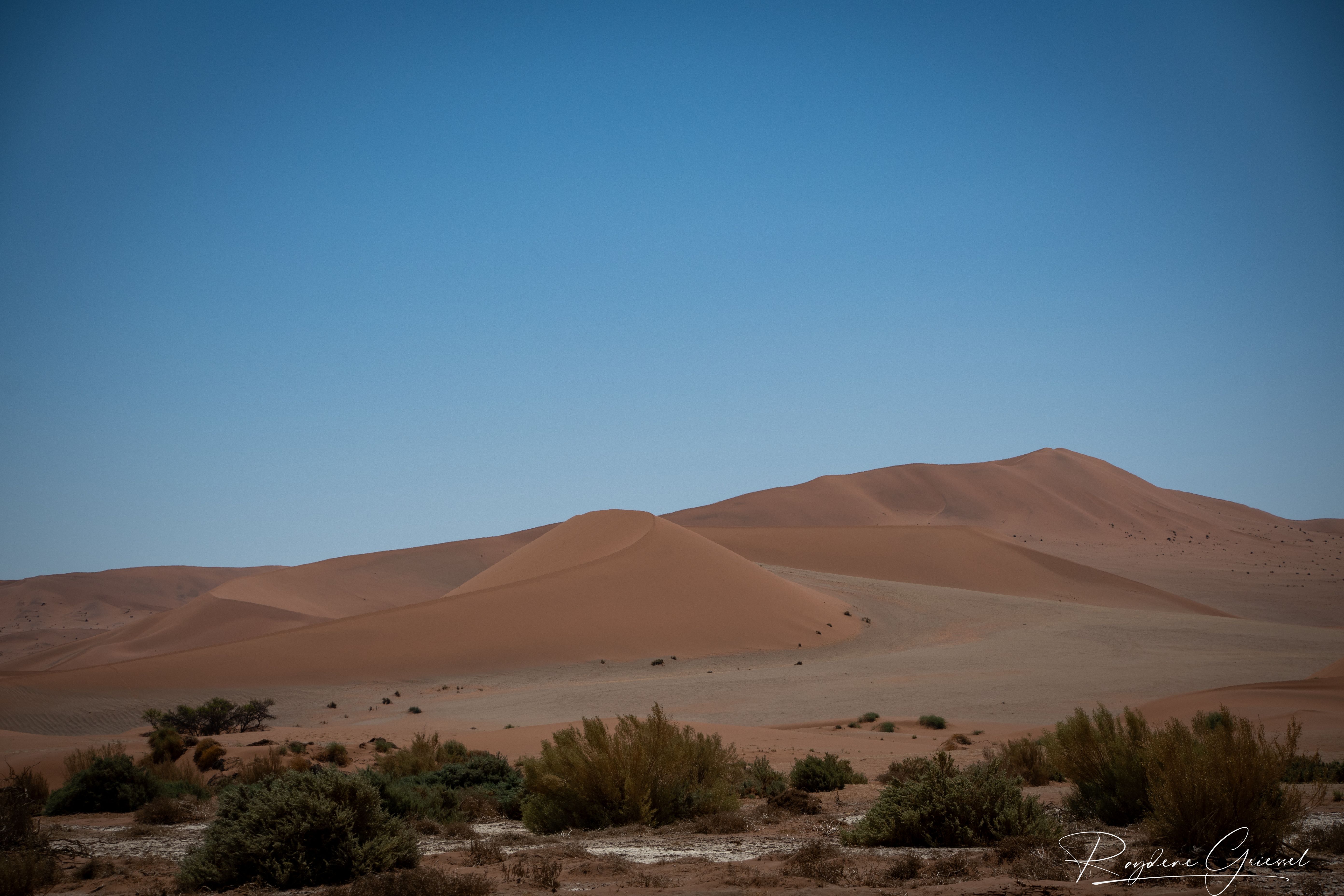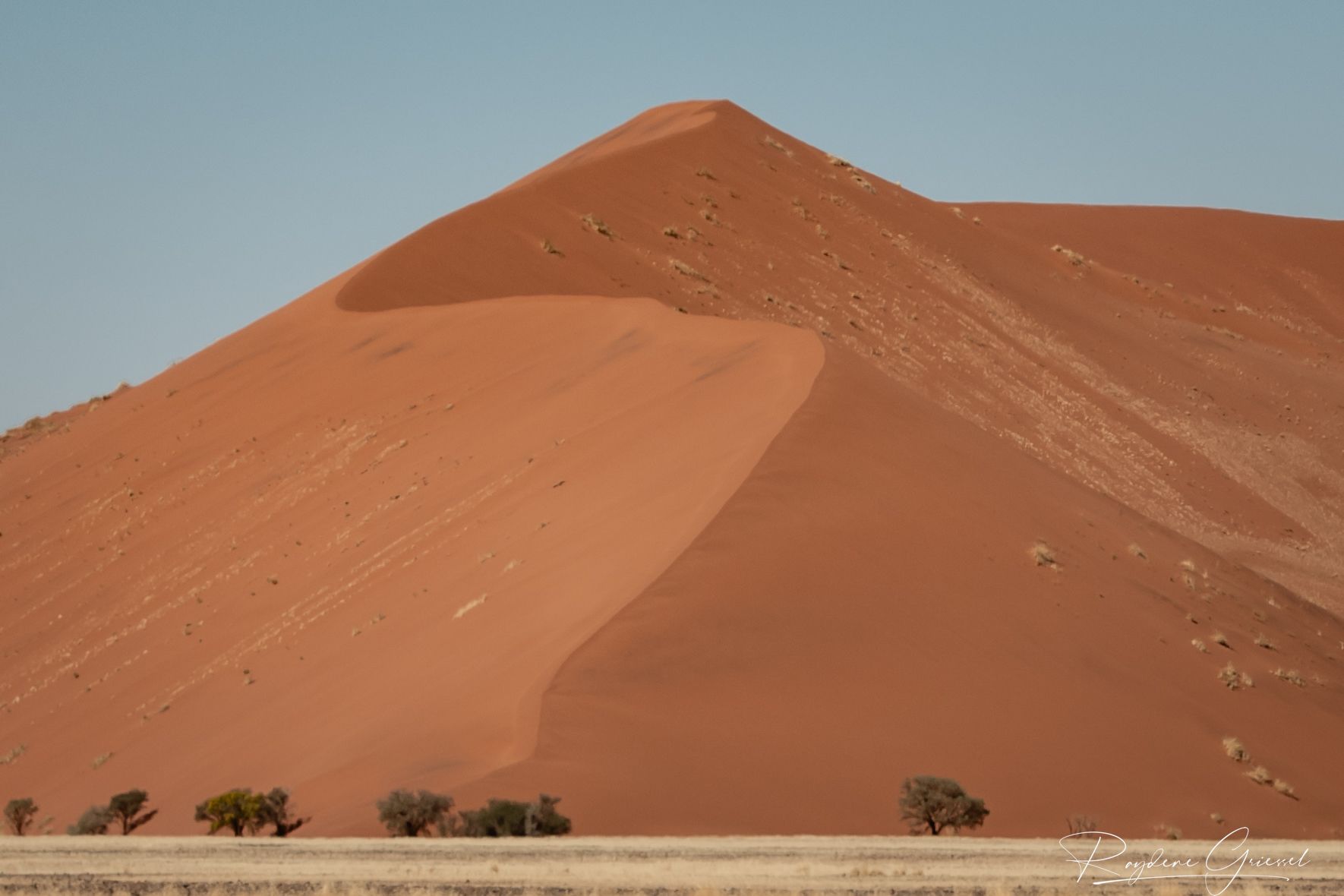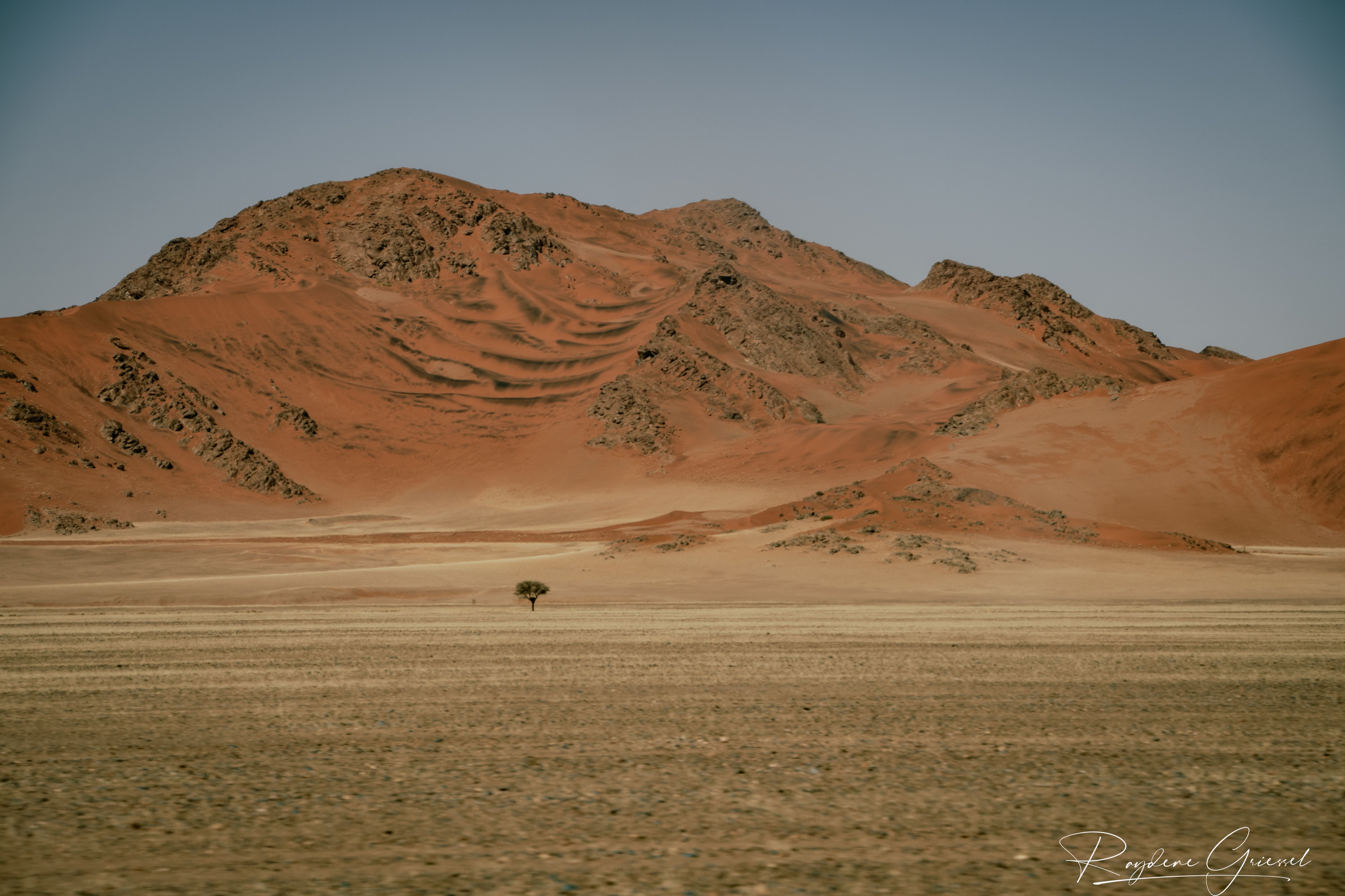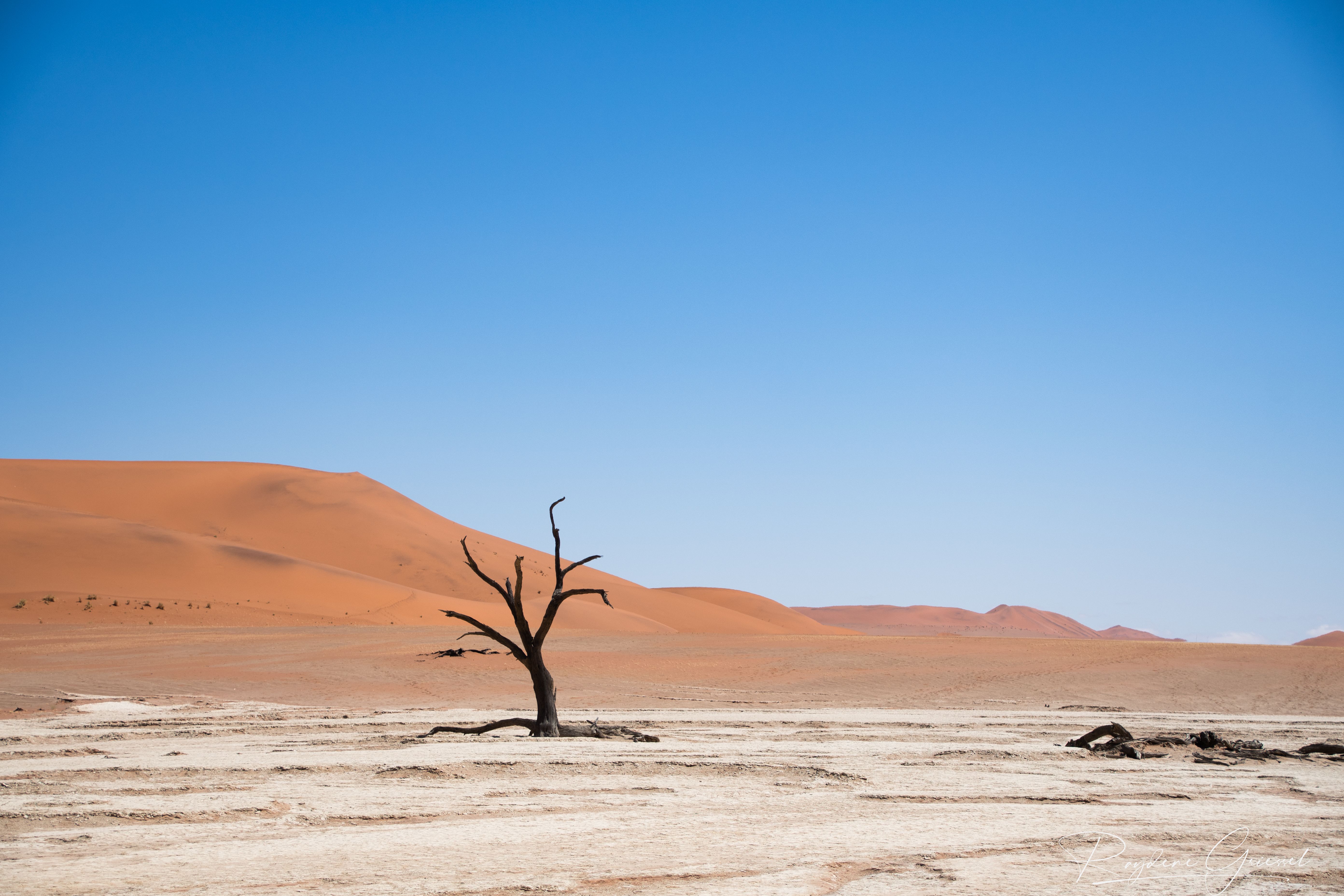 On our return, Mike & Shane climbed Dune 45, a 170m star dune named for its 45km distance from Sesriem. The ascent was gruelling—sand slipping underfoot, the relentless sun and wind—but reaching the ridge felt like summiting a desert peak. The view of rolling dunes and distant mountains was worth every step.