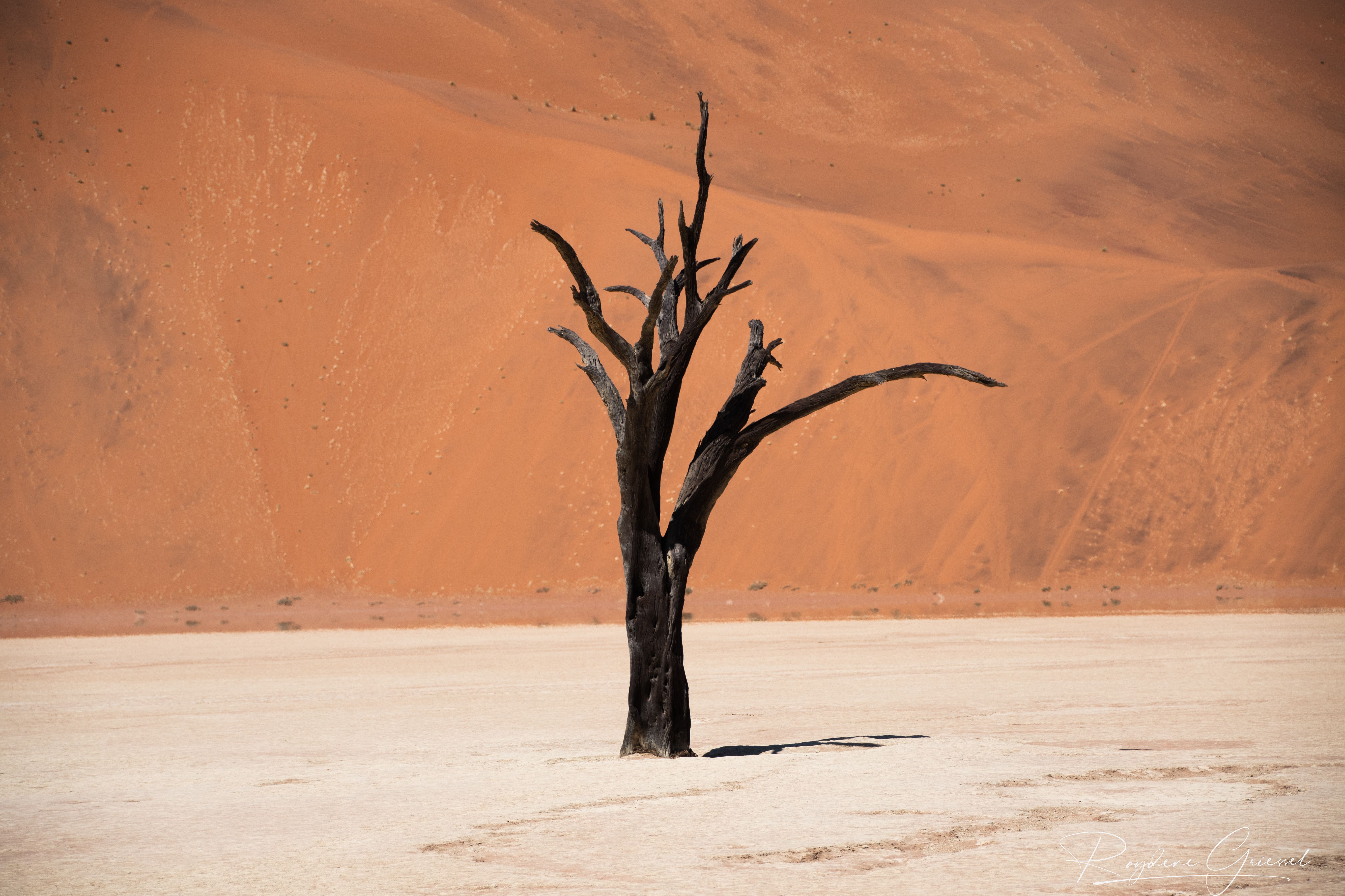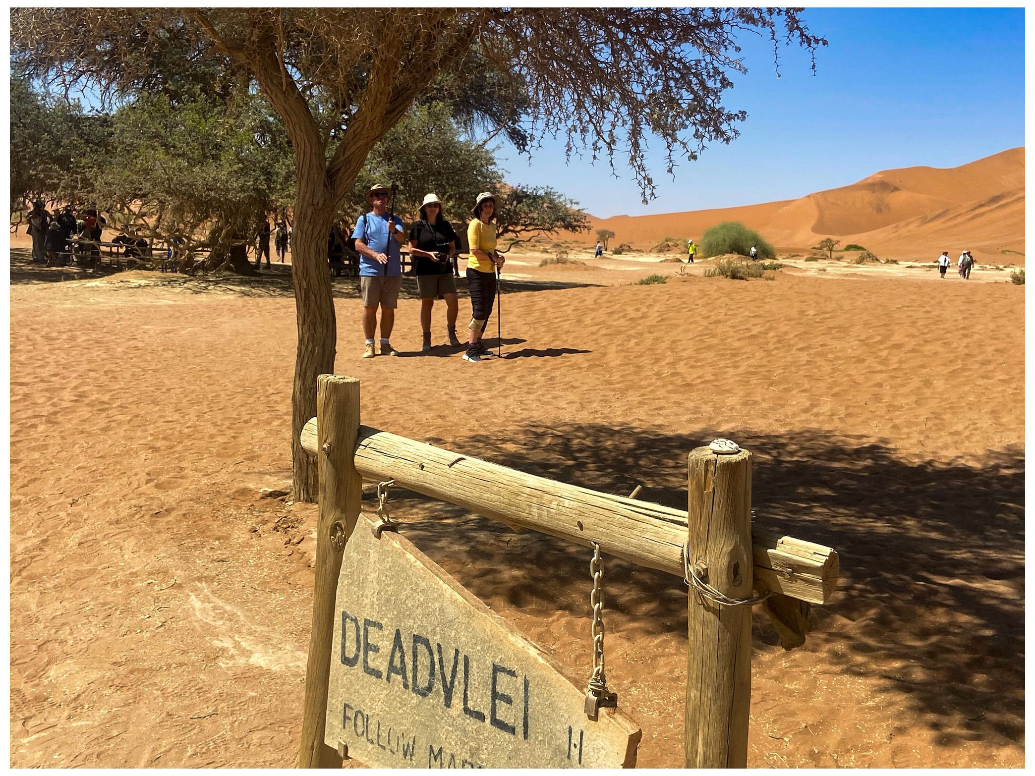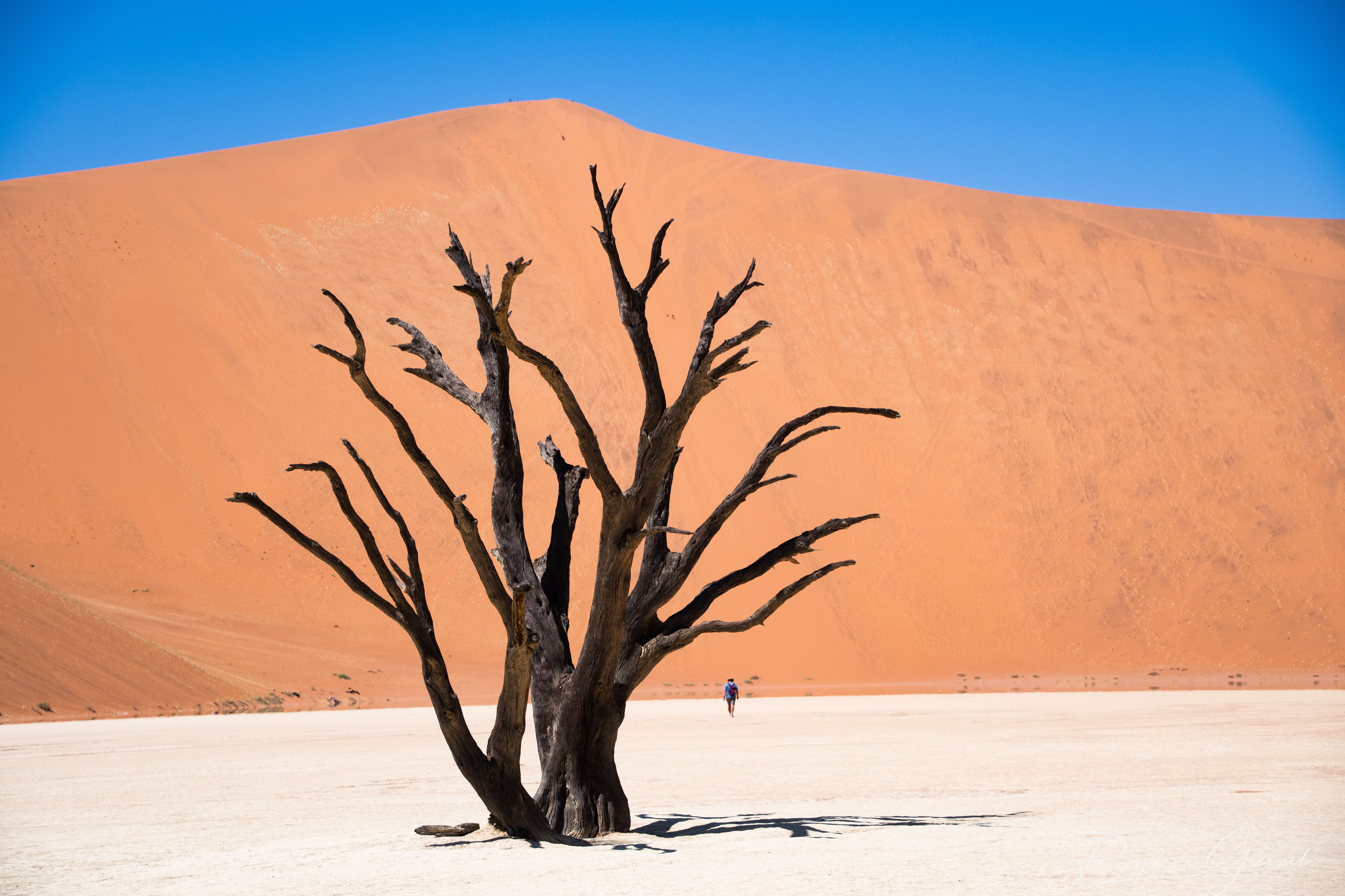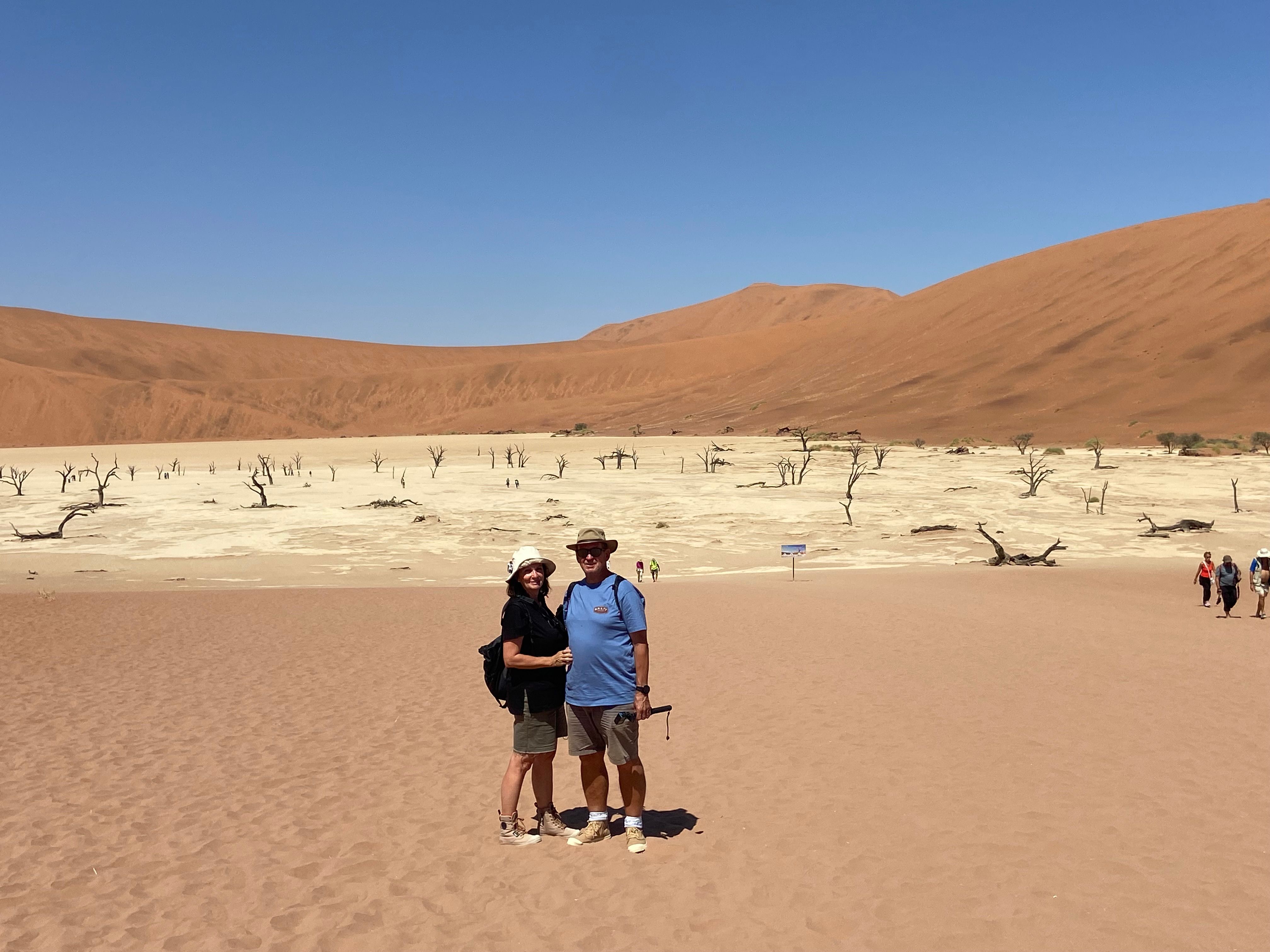 We began at Sossusvlei, a vast clay pan encircled by towering dunes. The sandy track to the pan required a four-wheel-drive from the two-wheel-drive parking lot. Wandering through this sea of sand, sculpted by centuries of wind, was humbling—the dunes glowed fiery orange in the sunlight.