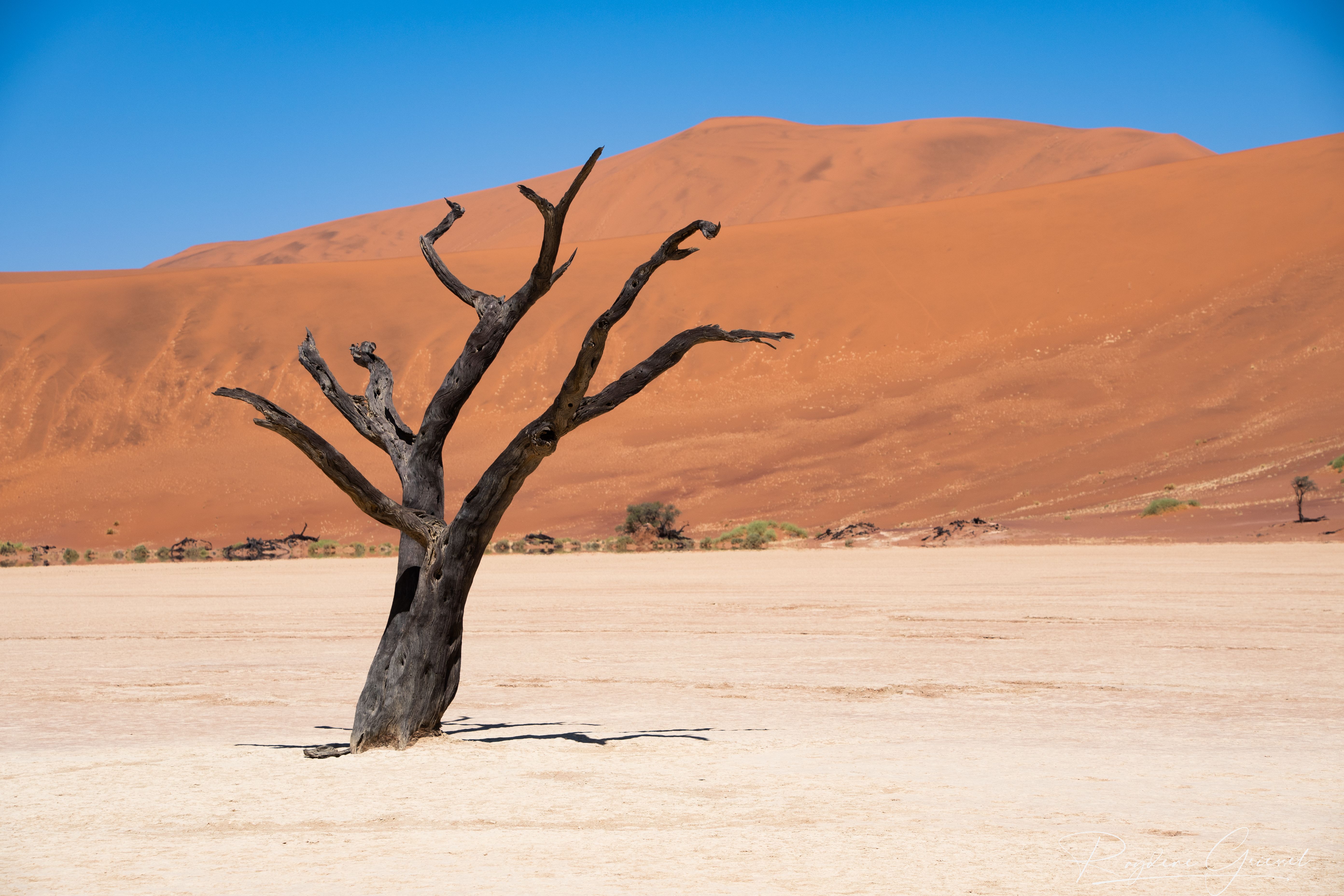 Leaving NamibRand Nature Reserve, we journeyed towards Sesriem along the C27, a main road in far worse condition than the D707. Arriving at Sesriem, we ventured into the heart of Namib-Naukluft National Park, home to Sossusvlei, Deadvlei, and Dune 45, accessible via a 60km drive on a decent surfaced road from Sesriem gate (open sunrise to sunset). As always, the Namib Desert’s red dunes and surreal landscapes left us awestruck by their vastness and vibrant colour contrasts.