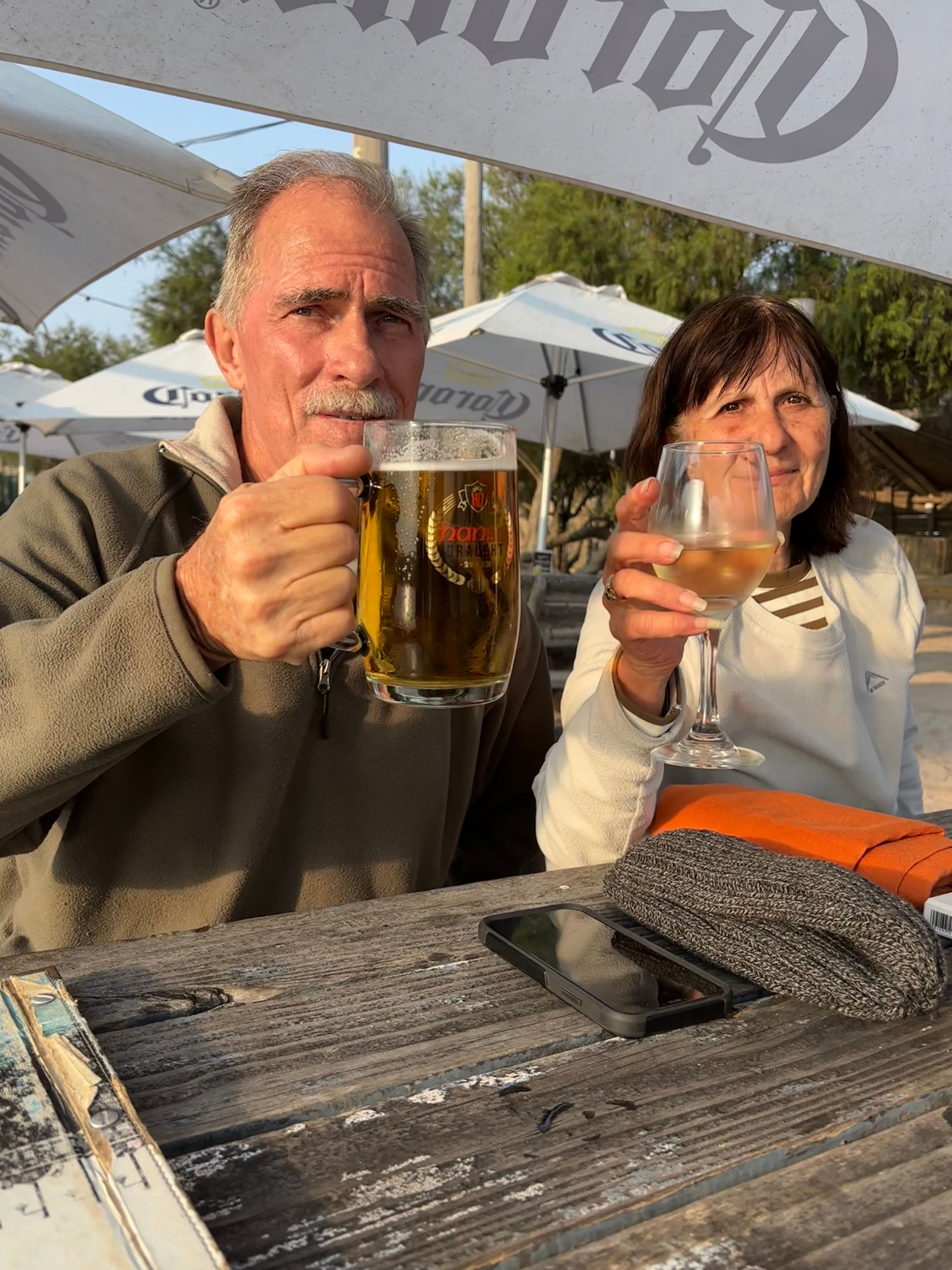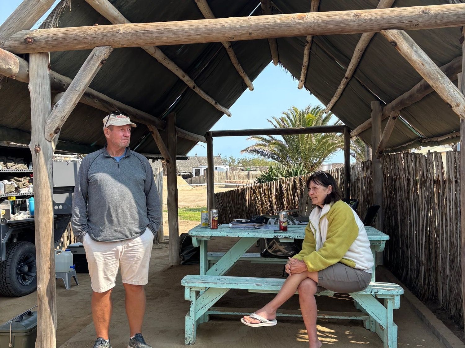 After exploring, we settled at Tiger Reef Campsite, close to the beach, pub, and restaurant. On our first evening, we stopped by the pub but were unprepared for the fresh sea breeze—shorts and sandals were a chilly mistake! The next morning, we bought long trousers in town, as Swakopmund’s weather was variable. The campsite was adequate but felt cramped, with pitches close together. The ablutions were satisfactory, with hot water available, though often busy. **Tips**: Pack warm layers for Swakopmund’s chilly evenings. Book Tiger Reef Campsite early during peak season (May–October). Bring sturdy tent pegs for sandy ground, and expect busy ablutions.