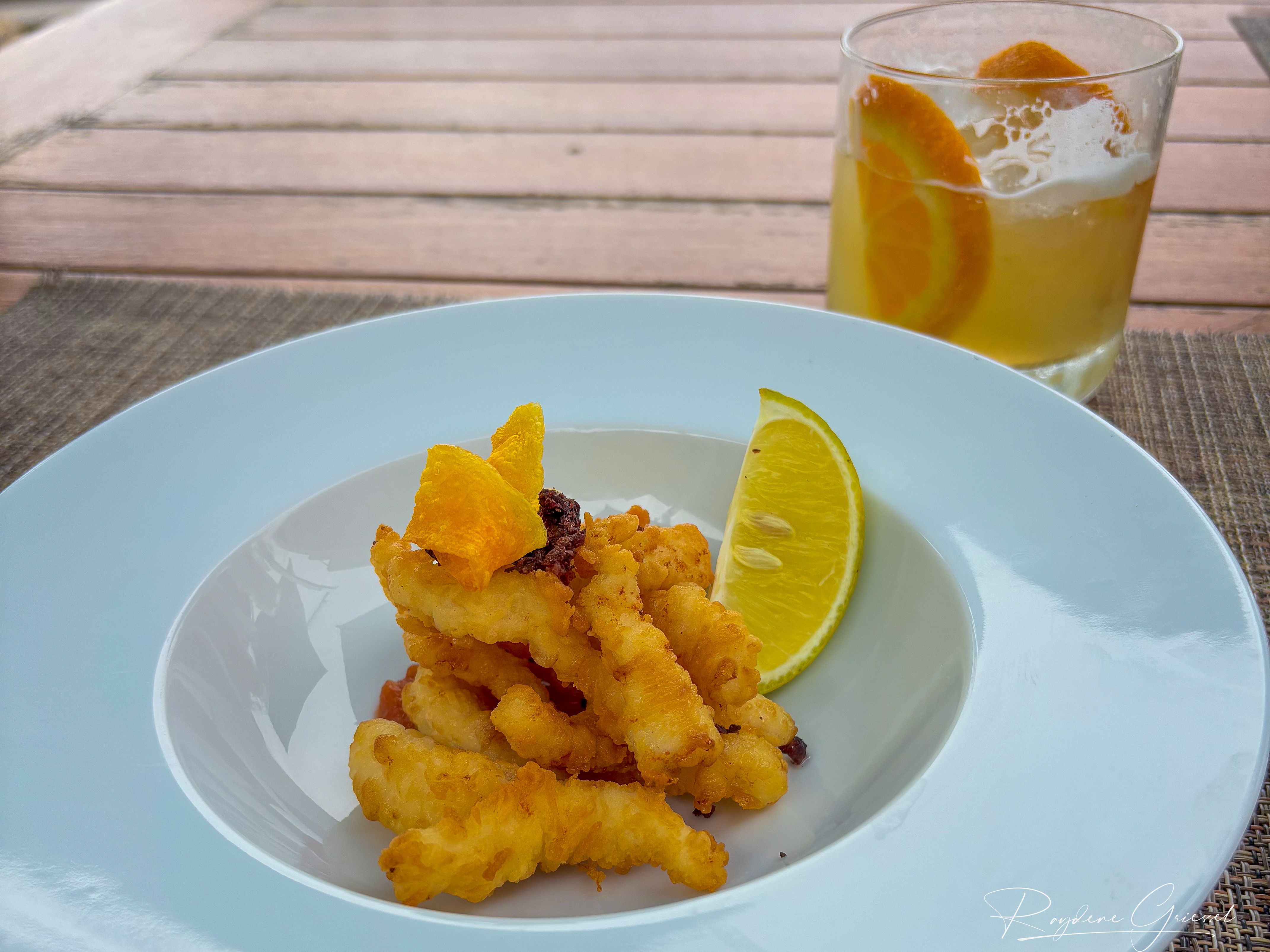 A whiskey sours to wash down delicious calamari.