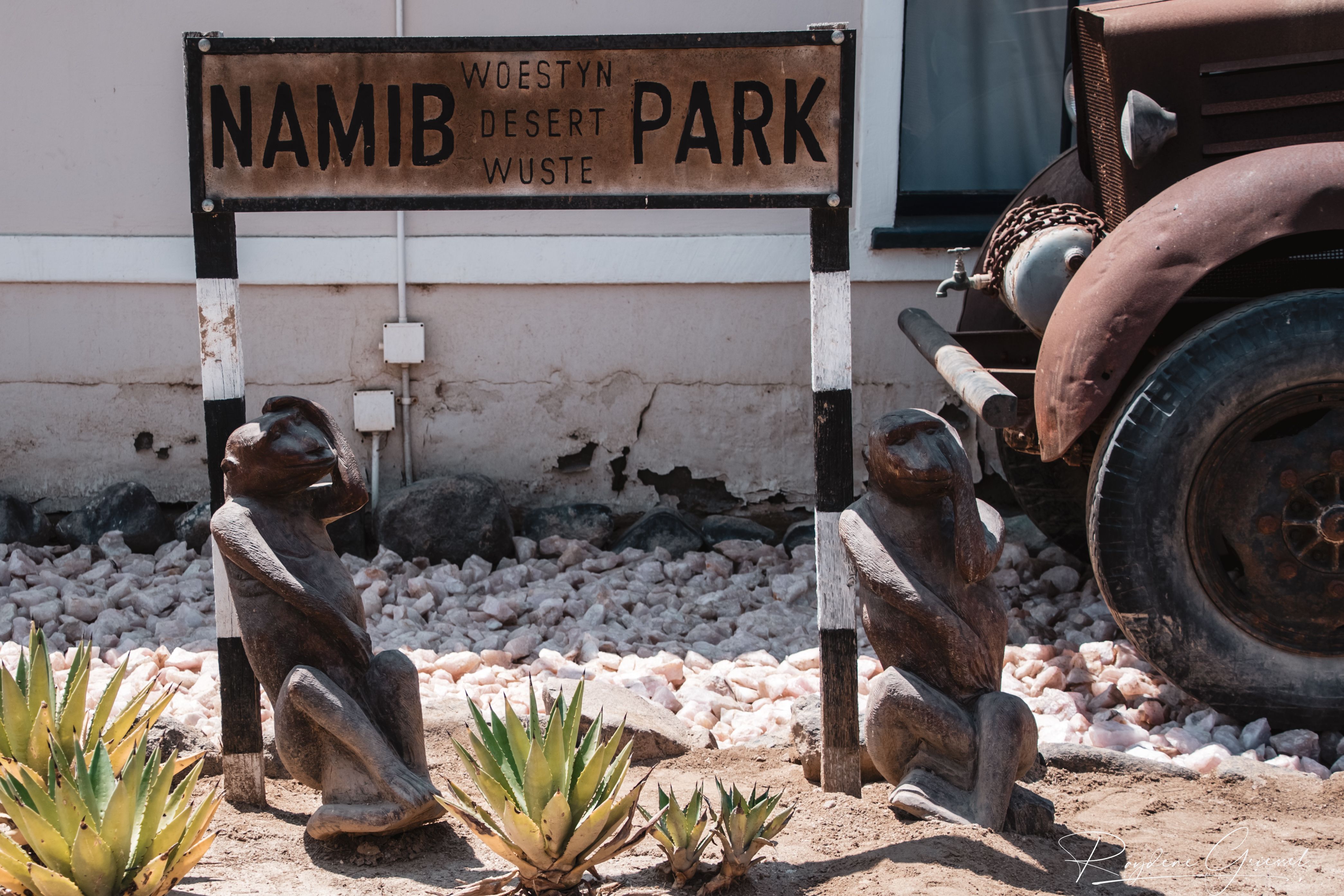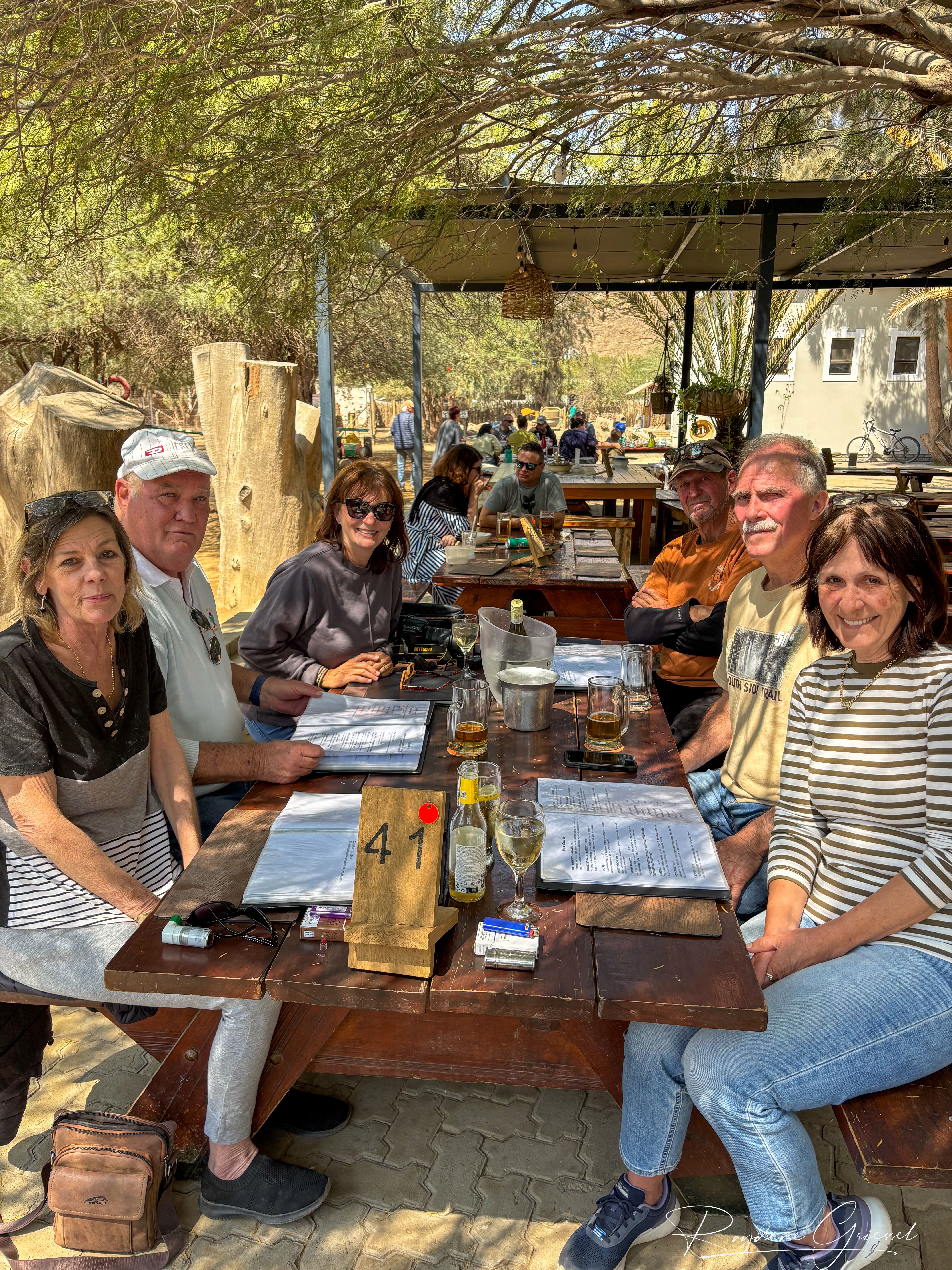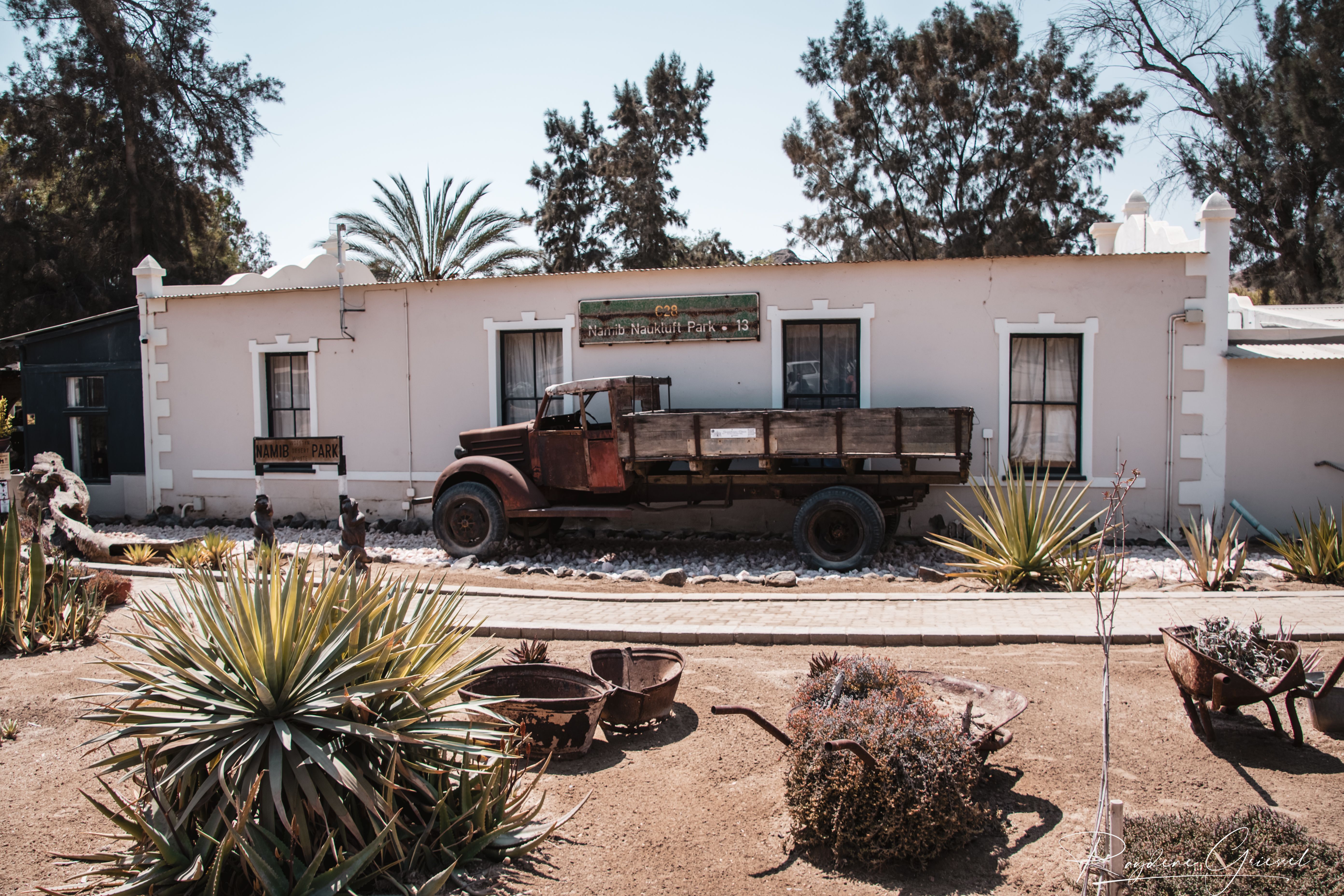 A short 12km detour north on a gravel track brought us to Goanikontes Oasis, a lush haven established in 1848. This historic farm, once a vegetable supplier for Swakopmund, sits like a mirage along the Swakop River amid the lunar terrain. Palm trees shade a natural swimming pool, and the restaurant serves homemade dishes like oxtail and eisbein, paired with cold draught beer—a welcome treat after dusty roads. We sat under acacias, spotting an array of birds & chickens, an eclectic assortment of decor makes this a must place to visit.