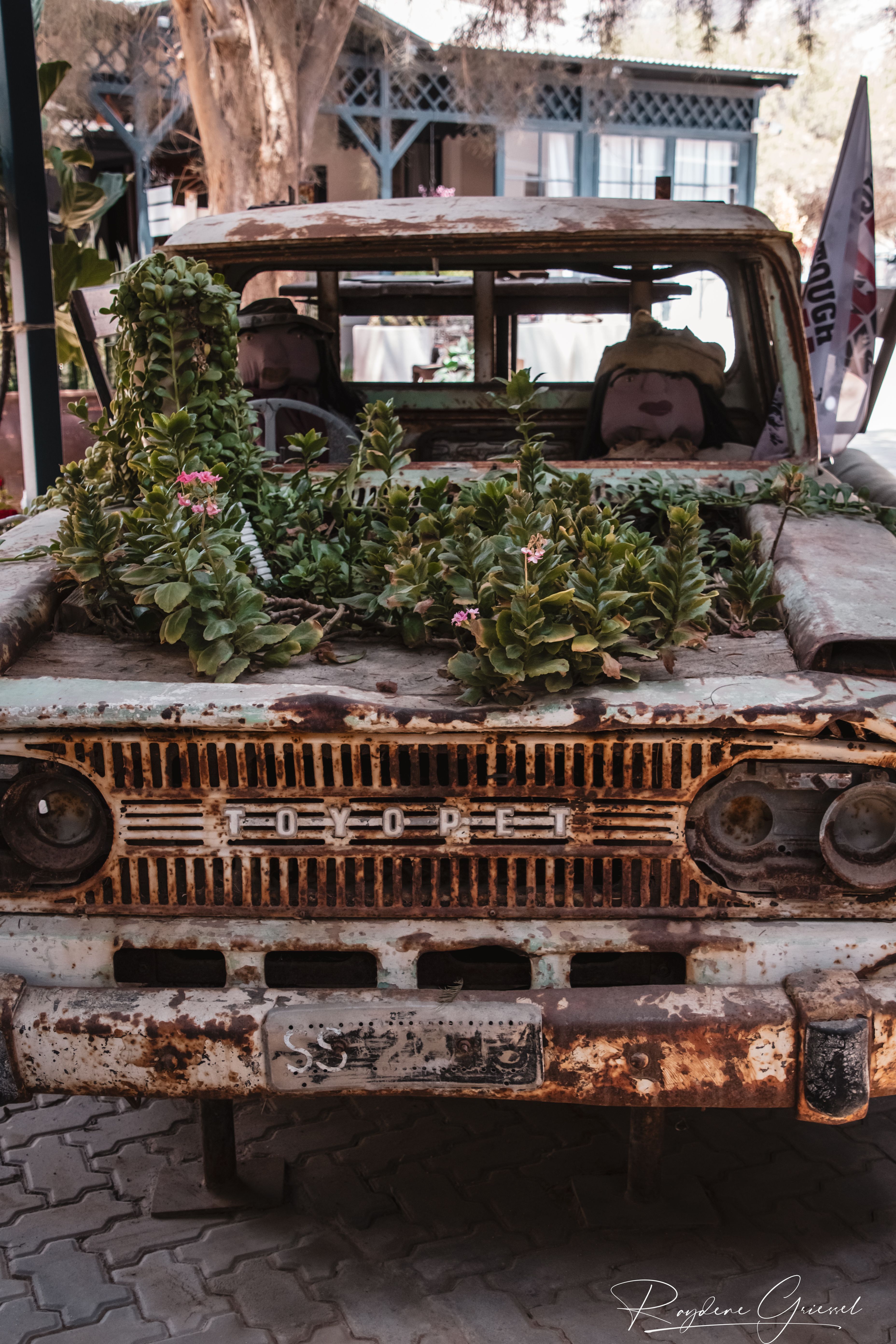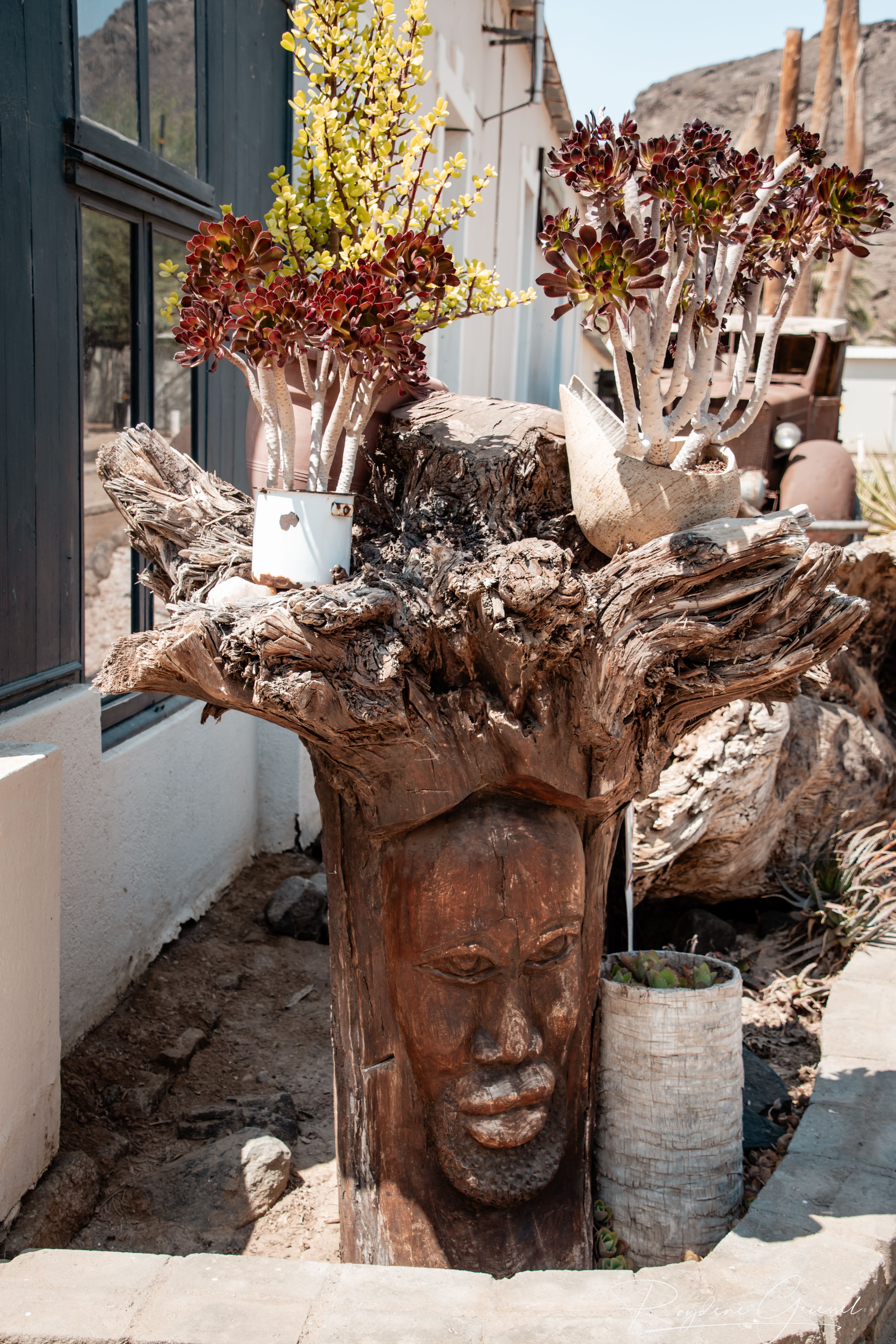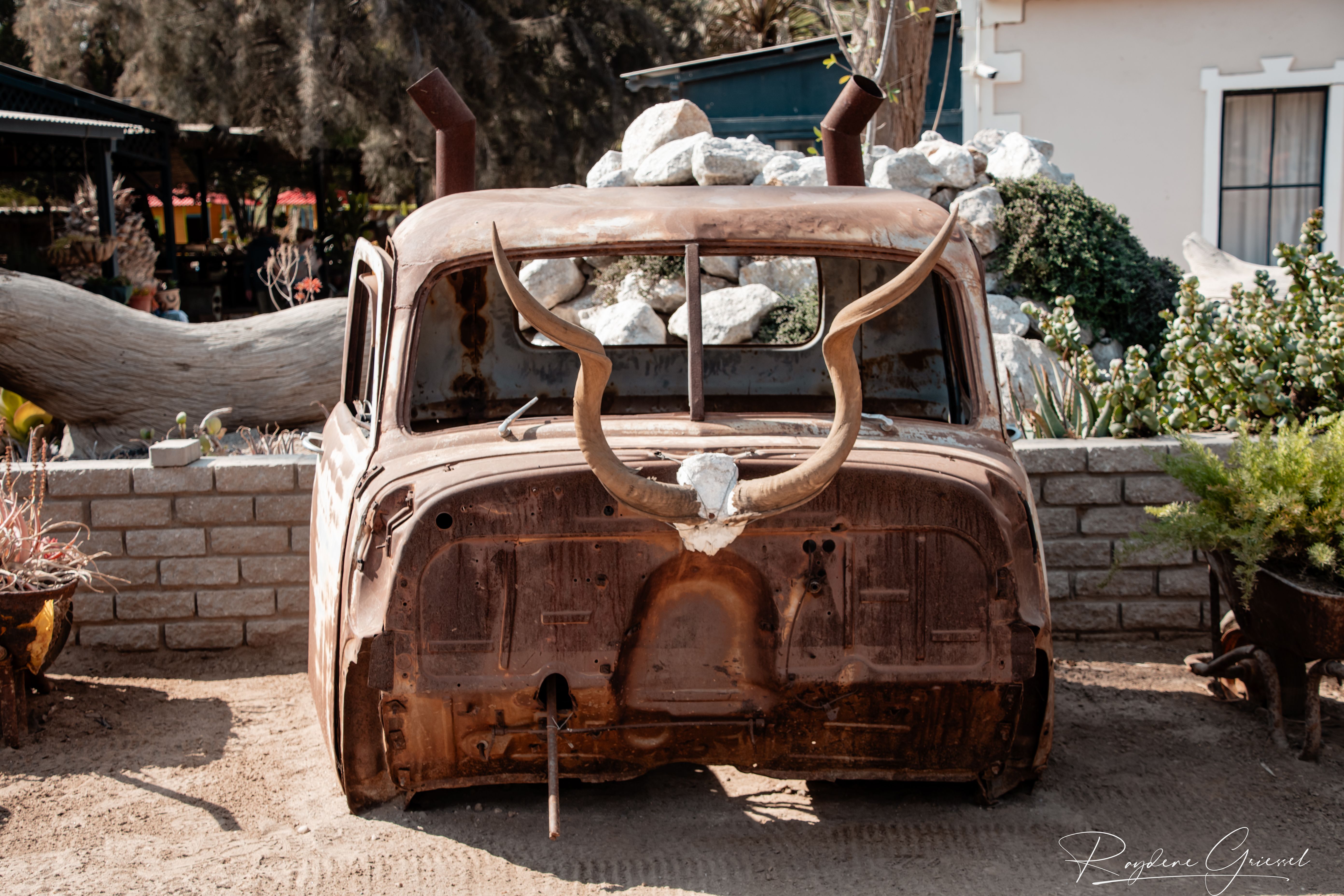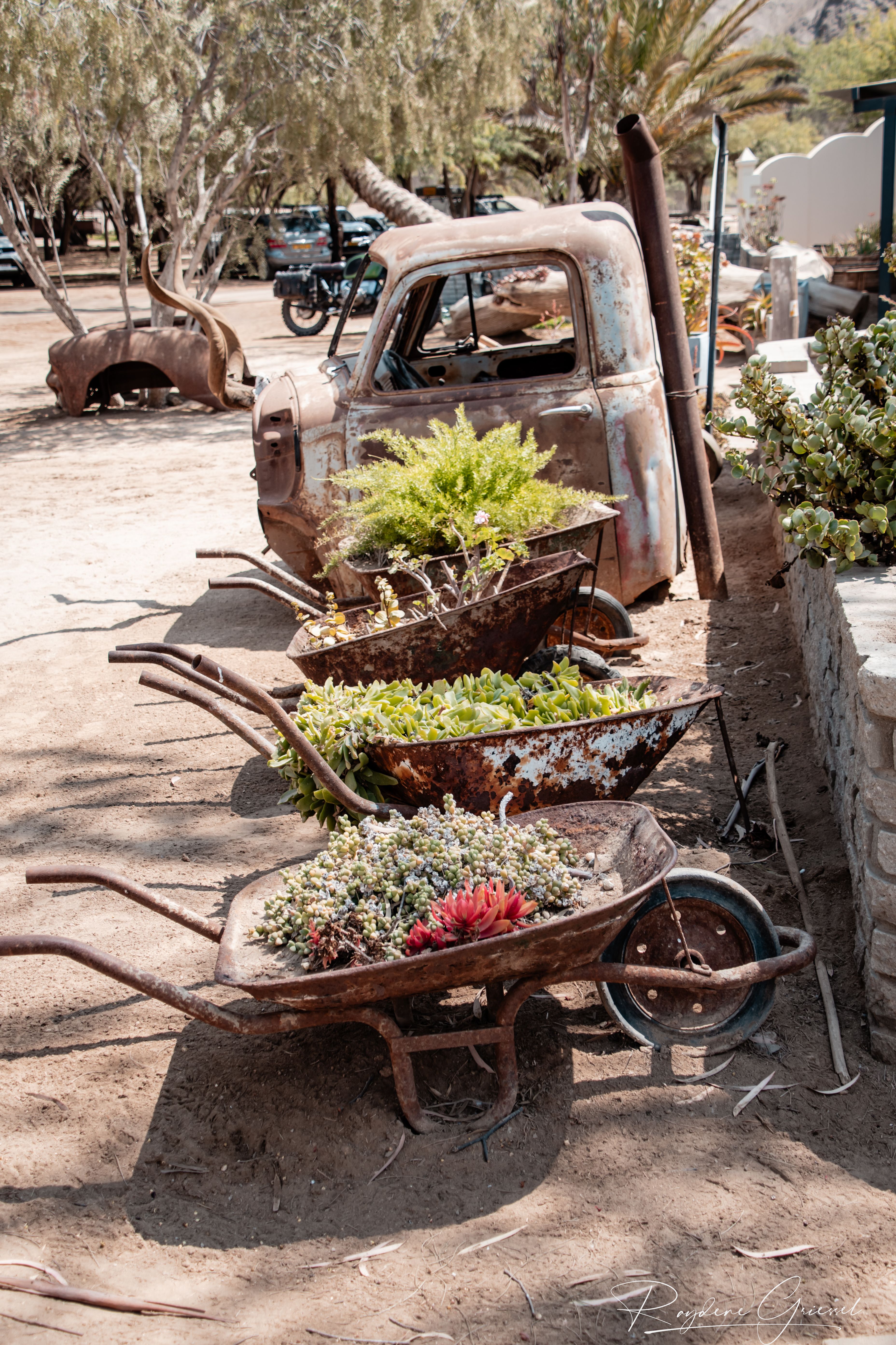 A short 12km detour north on a gravel track brought us to Goanikontes Oasis, a lush haven established in 1848. This historic farm, once a vegetable supplier for Swakopmund, sits like a mirage along the Swakop River amid the lunar terrain. Palm trees shade a natural swimming pool, and the restaurant serves homemade dishes like oxtail and eisbein, paired with cold draught beer—a welcome treat after dusty roads. We sat under acacias, spotting an array of birds & chickens, an eclectic assortment of decor makes this a must place to visit.